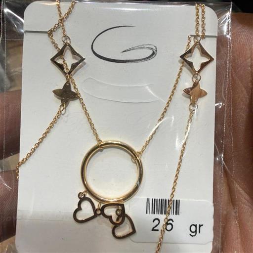 گردنبند طلای 18 عیار گالری رحمانی طرح قلب دو حلقه