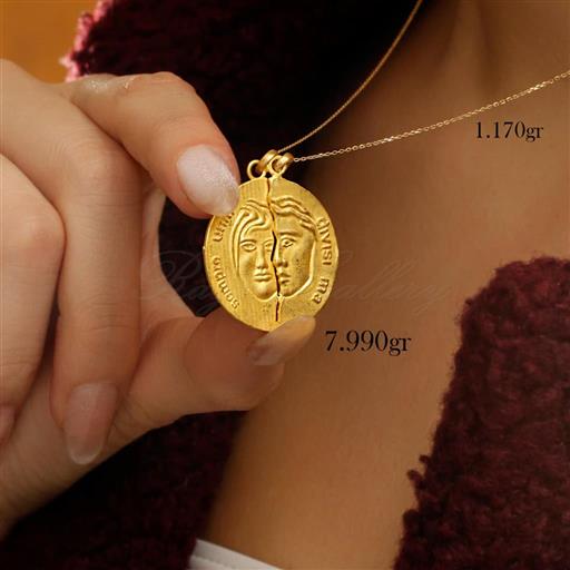 آویزگردنی طلای 18 عیار گالری رحمانی طرح دو حلقه