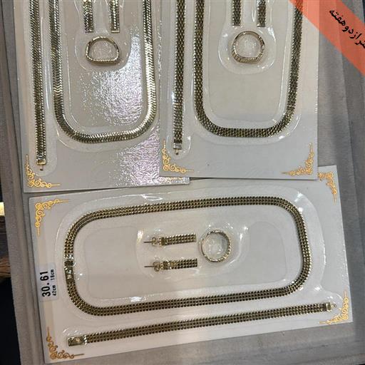 سفارششامل دستبند و گردنبند و گوشواره میباشد که با گوی های ریز حدود ۲.۵ میل تراش که بعنوان گوی البرنادو شناخته میشود ساخته شده اند